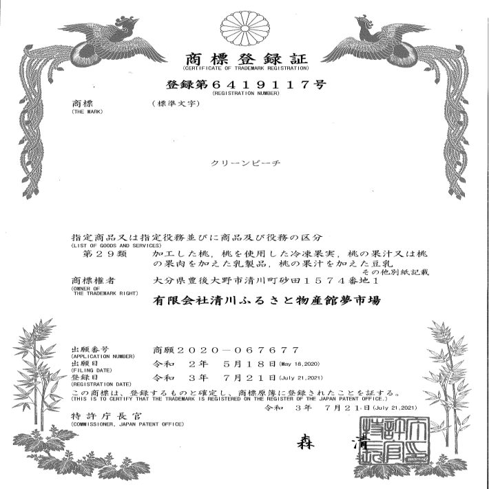 うことでクリーンピーチでの商標登録の申請を行い特許庁より認可